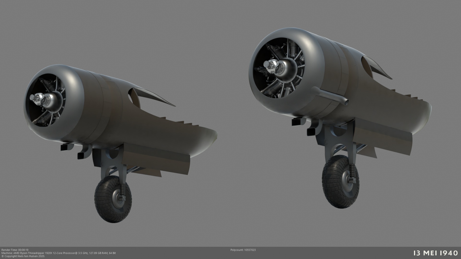 Ik zal mij even kort voorstellen. Mijn naam is Niels ten Hulsen en ik ben al jaren geïnteresseerd in de Meidagen van 1940. Van tijd tot tijd werk ik aan een aantal projecten zoals het bedenken en schrijven van een korte film. Nu heb ik het 3d modellen van een Fokker T5 weer opgepakt voor een illustratie. Hieronder alvast een paar voorbeelden van hoever ik nu ben. De kleuren e.d. kloppen uiteraard nog niet, maar verder probeer ik 'm zo gedetailleerd mogelijk te modellen. Tips en eventuele referentiefoto's zijn van harte welkom!