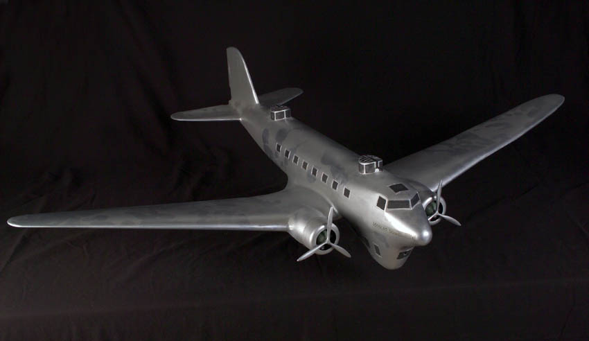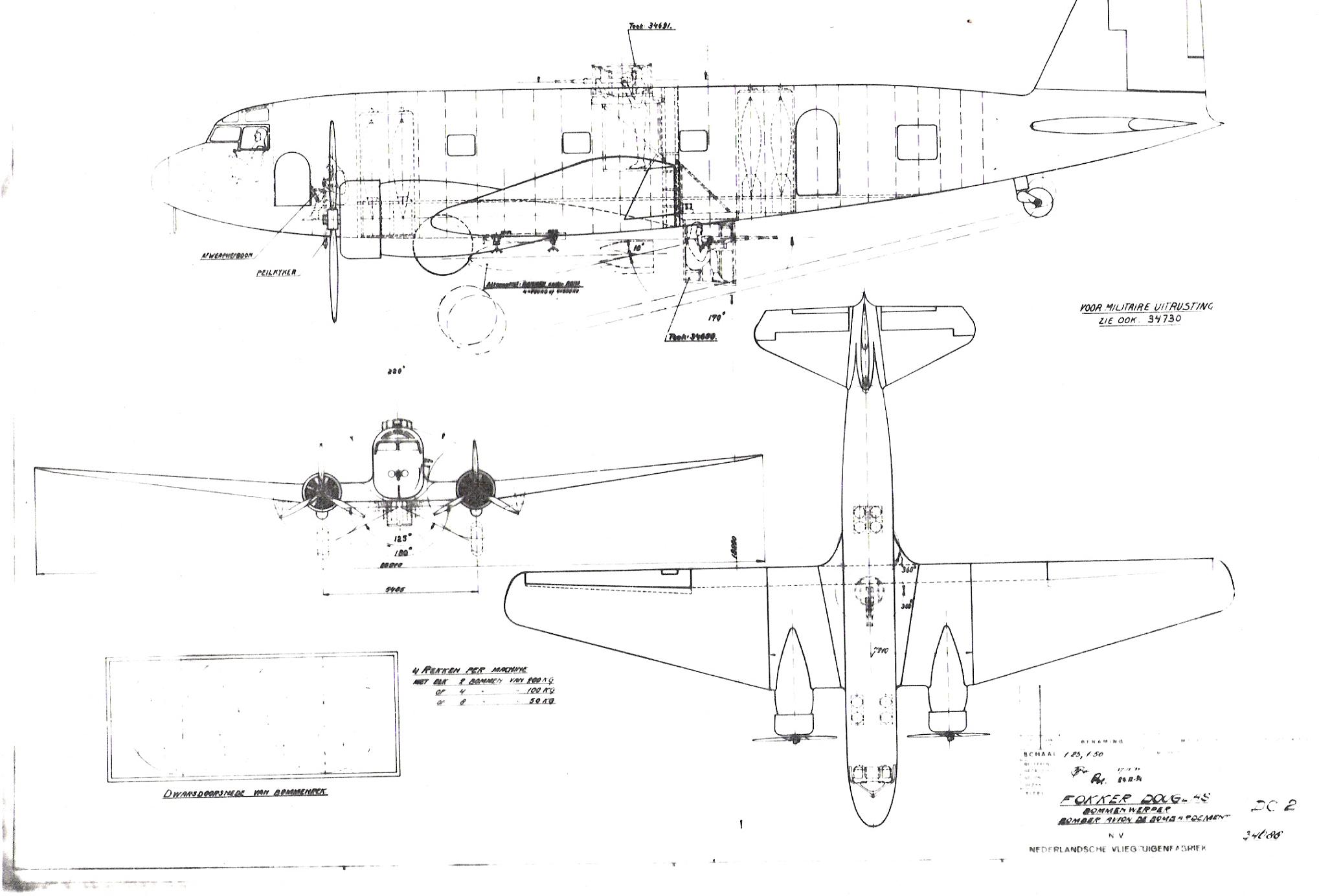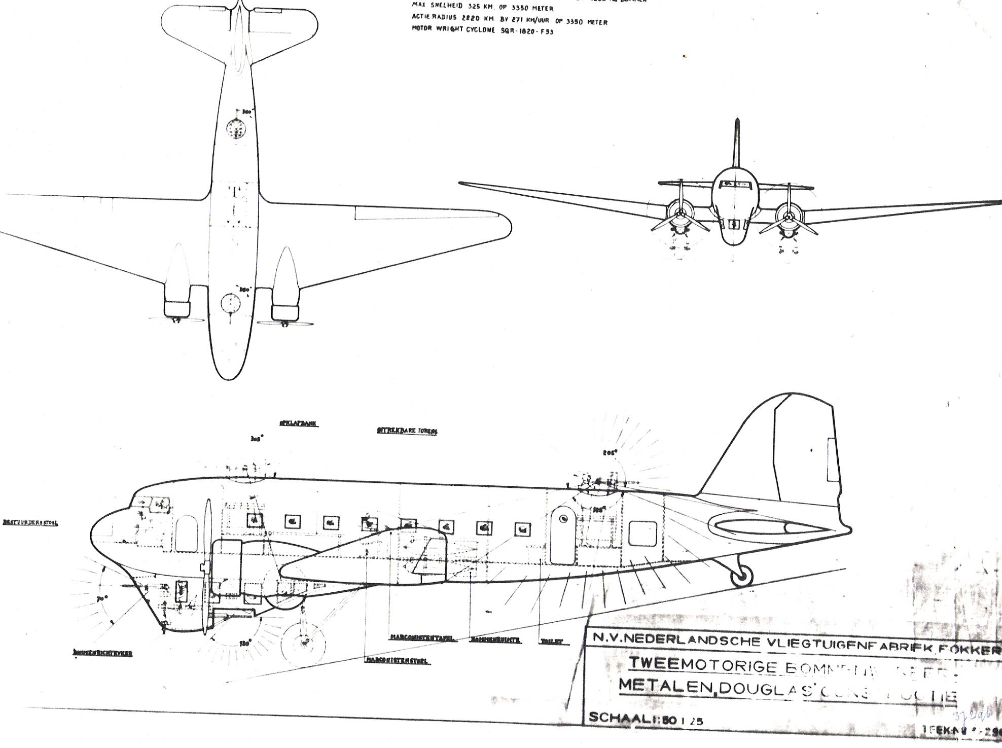 This 1/20 scale trade-show model was a proposal by Fokker, dated about 1935. Fokker was the exclusive European importer for Douglas Aircraft at the time, and this conversion was to make bombers out of existing commercial DC-3 airliners.